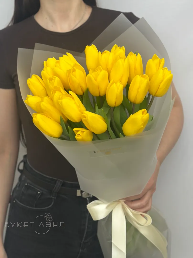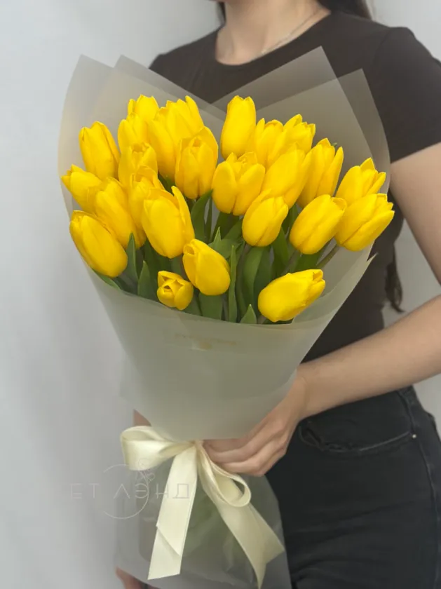Букет из 25 тюльпанов «Солнышко в ладошке»