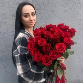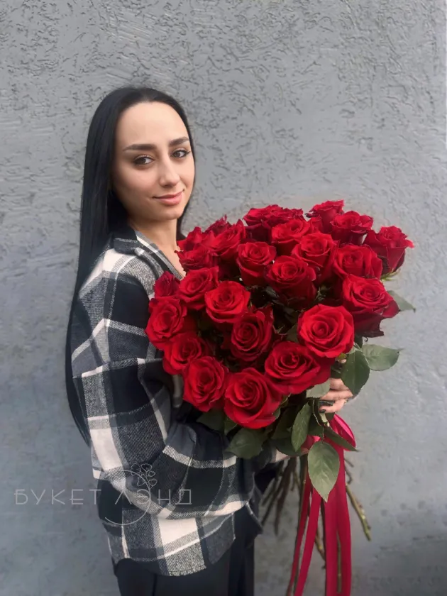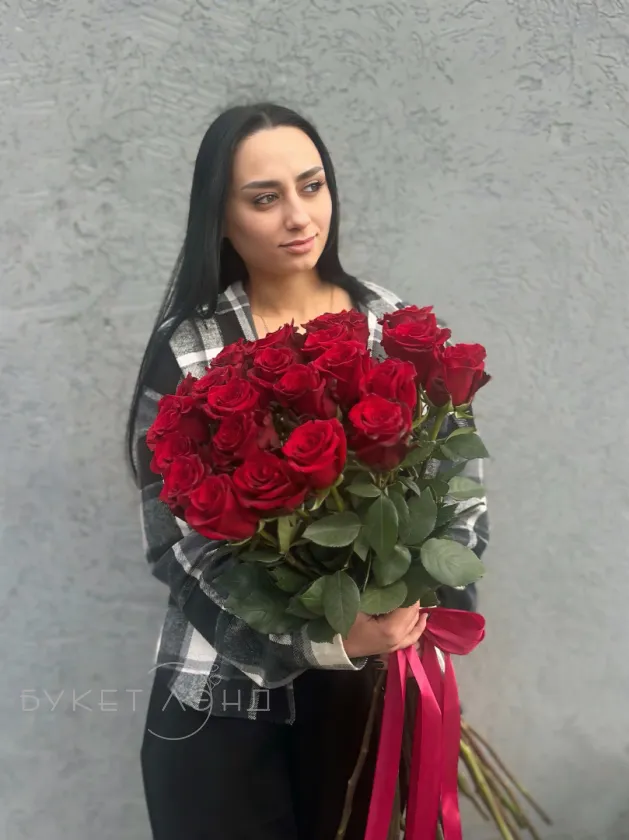 Букет из 25 красных роз 80 см «Ты-мое всё»