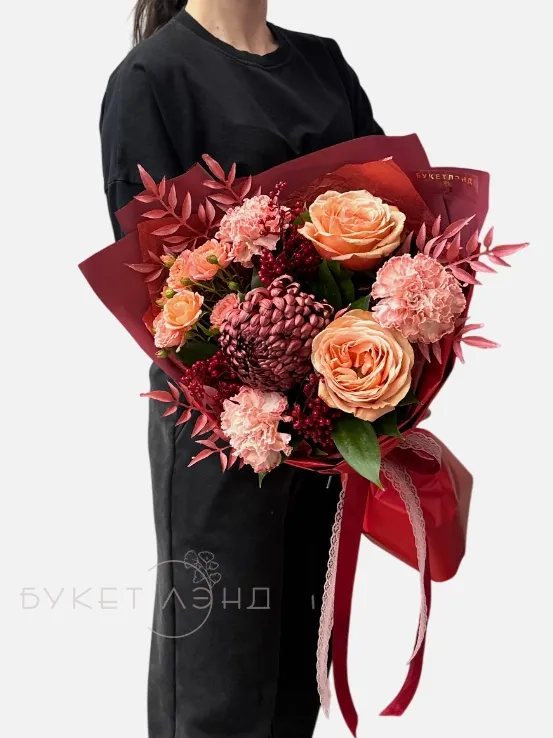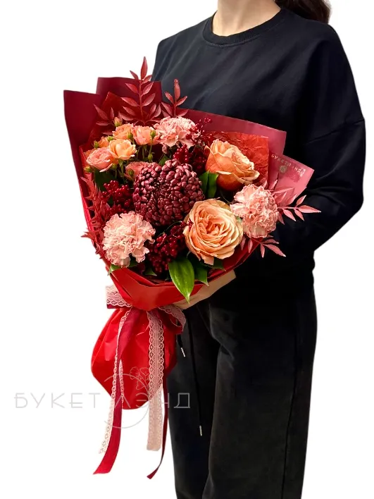 Погрузитесь в атмосферу теплых сентябрьских дней с нашим сборным букетом «Оттенки осени». В его составе искусственная ягода и искусственная ветка добавляют природную аутентичность и насыщенность. Работа флориста тщательно продумана, чтобы подчеркнуть гармонию и сбалансированность композиции. В букет входят изящные диантус и хризантема, создающие уютное настроение. Кустовая роза и классические розы придают композиции романтичность и выразительность. Рускус и писташ добавляют мягкости и свежести, делая букет еще более живым. Этот сборный букет прекрасно подойдет для праздничных и повседневных интерьеров, создавая атмосферу уюта и тепла. Закажите «Оттенки осени» и насладитесь красотой осенней природы в вашем доме.