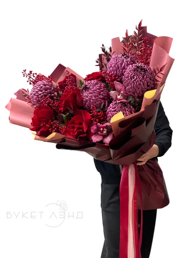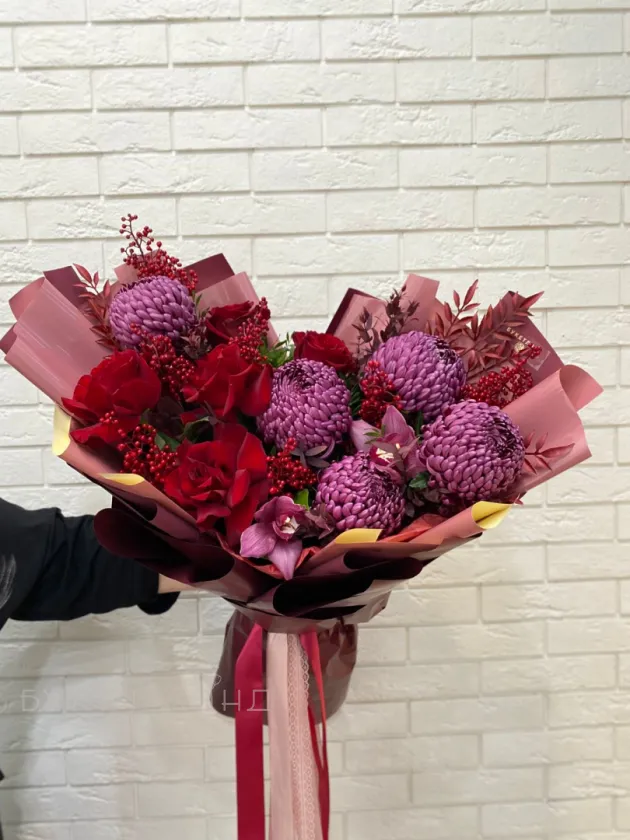 Сборный букет «Микс» — это эффектное сочетание живых и искусственных элементов, создающих уют и свежесть в любом интерьере. В букет входят изысканные хризантемы, розы, цимбидиум, а также искусственные ветки, ягоды и эвкалипт, оформленные флористом в стильную упаковку. Этот сборный букет станет отличным украшением для дома или подарком для особого человека.