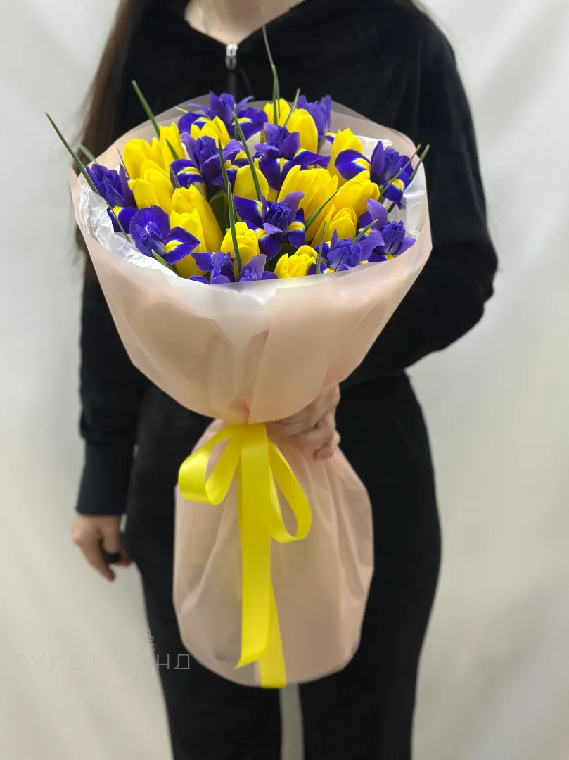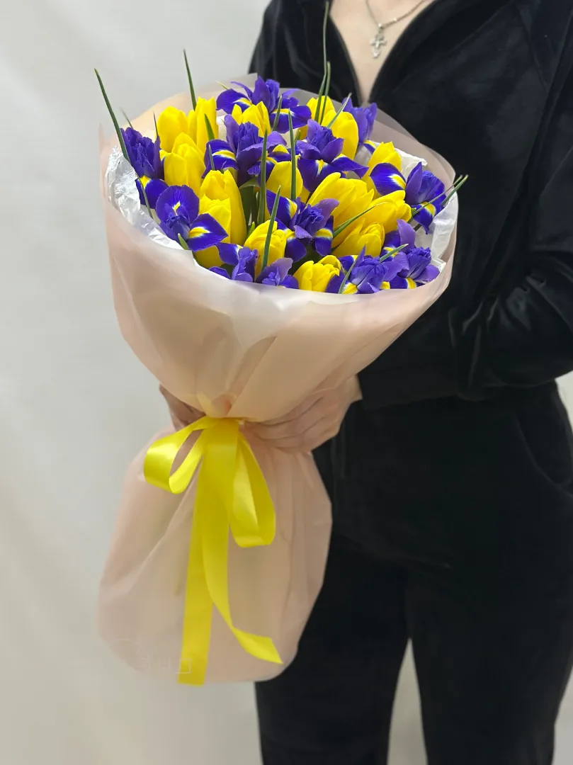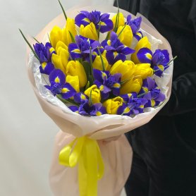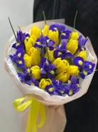 Букет с тюльпанами и ирисами