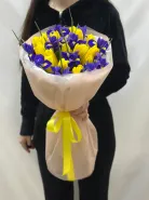 Очаровательный букет с свежими тюльпанами и изысканными ирисами станет идеальным подарком для любого повода. Яркие и нежные цветы в гармоничном сочетании подчеркнут вашу внимание и заботу. Идеальное оформление и свежесть делают этот букет незабываемым и прекрасным украшением любого пространства.