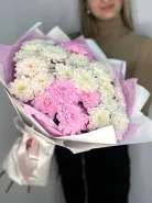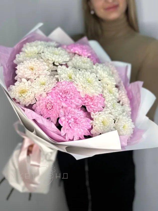Букет из 7 веток хризантемы «Розовая мечта» очень нежный и элегантный. Хризантемы символизируют долголетие, радость и благополучие. Белый цвет хризантемы обычно ассоциируется с чистотой и невинностью, а розовый цвет добавит нежности и романтики. Такой букет станет прекрасным подарком для любого случая, от праздника до простого проявления внимания к близкому человеку.