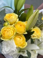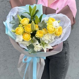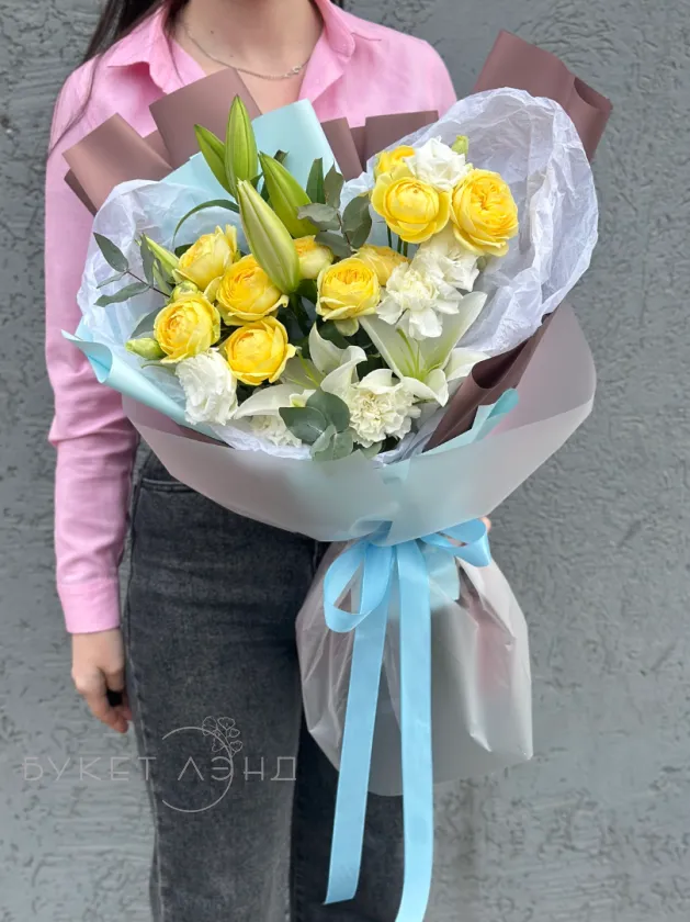 Сборный букет «Мемори» — гармоничное сочетание лилий, кустовых роз, диантуса и воздушного эвкалипта, создает элегантный образ для любого особенного случая. Его яркие и нежные тона и свежесть оставят незабываемые впечатления на долгое время.