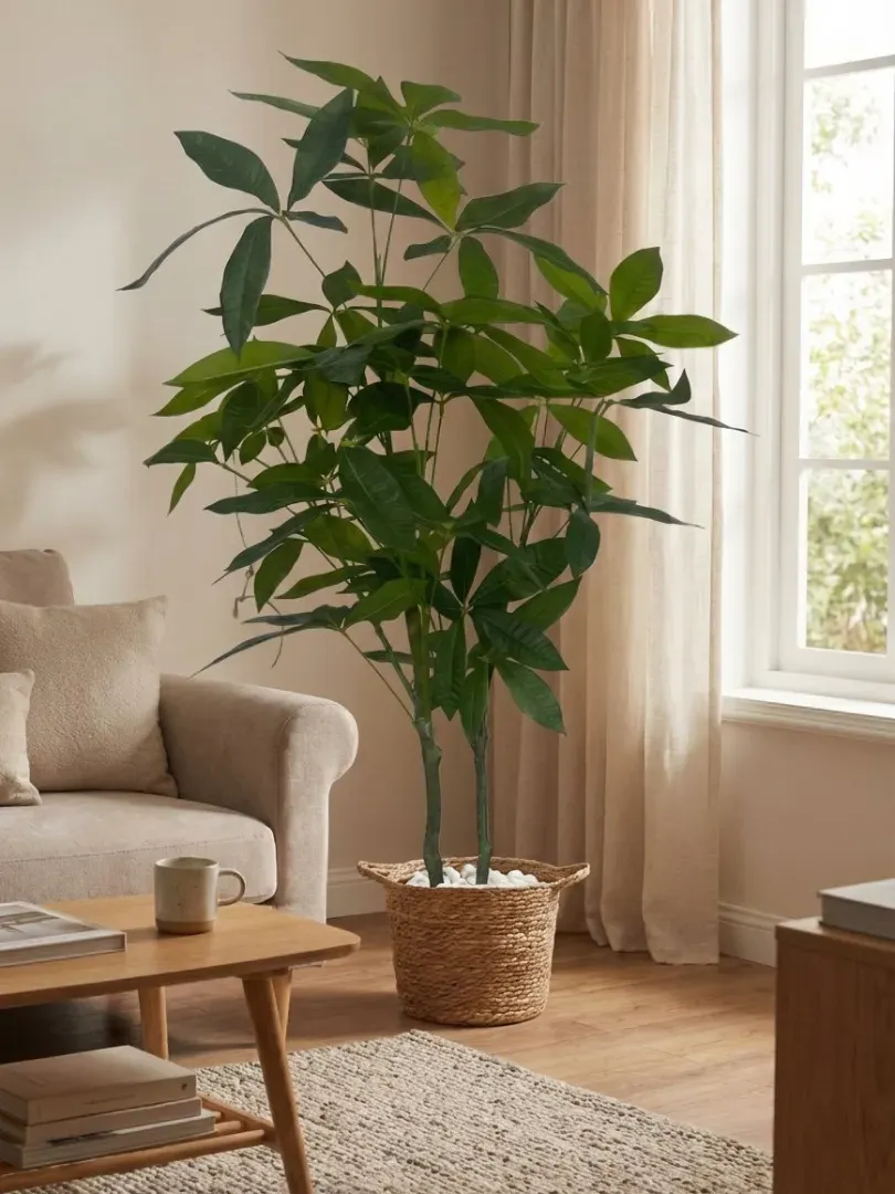 Искусственная фатсия (японская аралия) — это популярное декоративное растение с крупными пальчатыми листьями, идеально подходящее для оформления интерьеров.