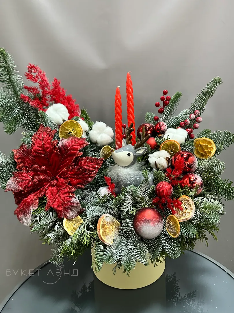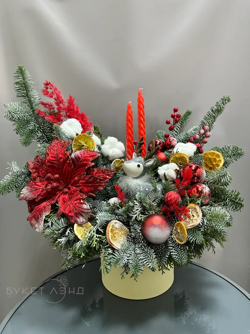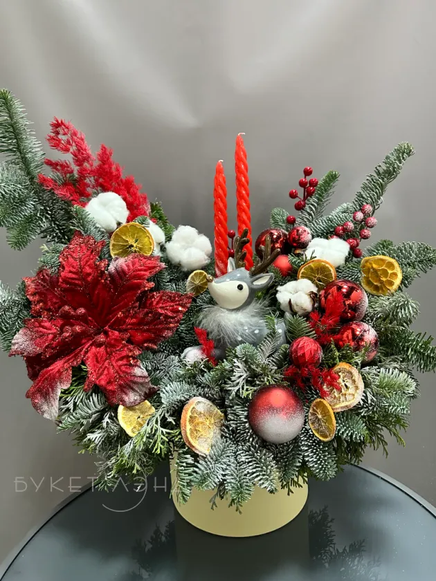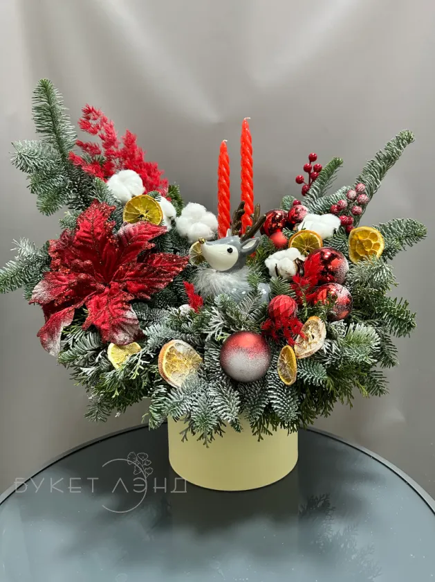 Композиция из нобилиса идеально подходит для украшения вашего интерьера, стола или в качестве подарка для близких. Добавьте волшебства в свои новогодние дни с этой стильной и оригинальной композицией!