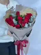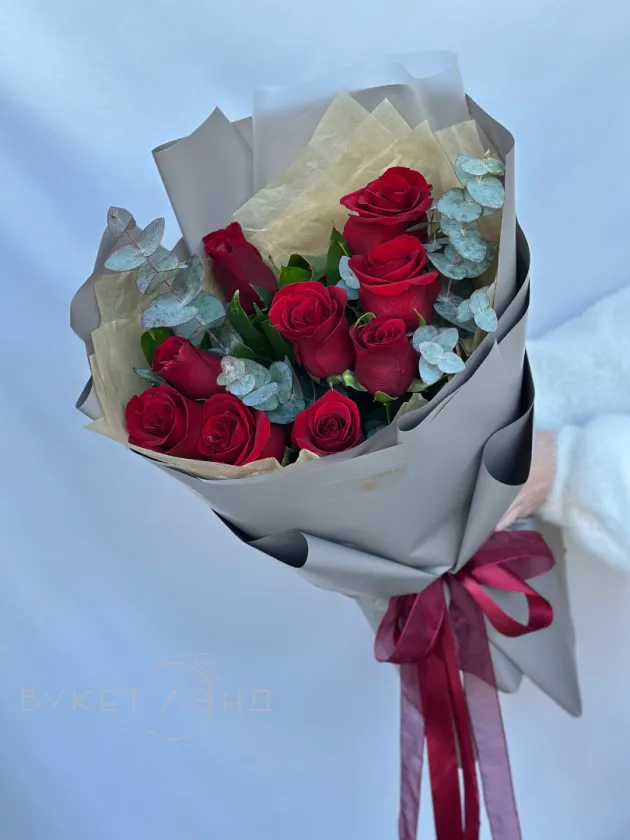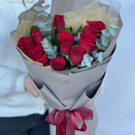 Этот изысканный букет состоит из 11 красных роз с эвкалиптом, создающих романтическое настроение. Такой букет станет подарком для близкого человека.