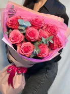 Букет из 9 роз с эвкалиптом «Розовый фламинго» — это изысканное сочетание нежных роз и свежего эвкалипта. Такой букет станет идеальным подарком на любой праздник.