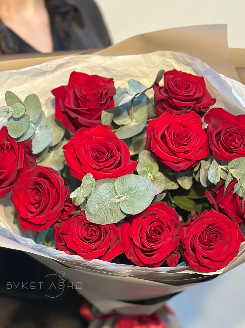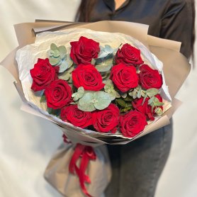 Подарите особенные чувства с букетом «Тайна чувств». Этот букет из 11 ярких красных роз символизирует страсть и любовь. Каждая роза тщательно отобрана. В оформление добавлены свежие веточки эвкалипта, которые придают букету изысканный аромат и элегантность. Букет красиво оформлен и идеально подойдет для романтического признания или особого праздника. Благодаря своему стилю, он подчеркнет важность момента и искренность чувств.