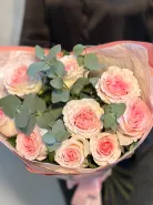 Букет из 9 роз с эвкалиптом «Зефирка»