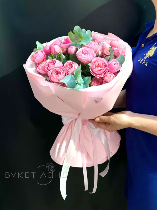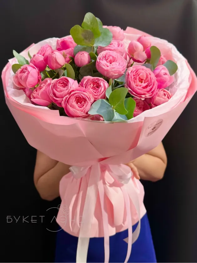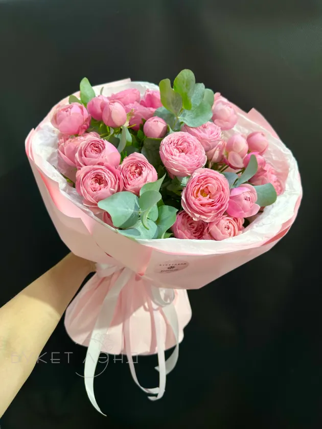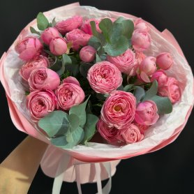 Букет из кустовых роз с эвкалиптом «Самой милой»
