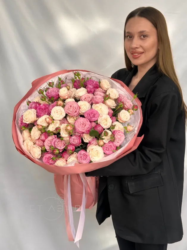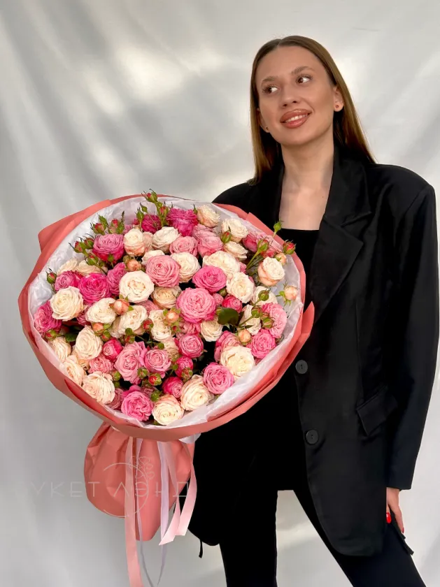 Букет из 15 кустовых роз - идеальный подарок. Он способен передать самые искренние чувства и стать ярким акцентом любого праздника. Он подойдет как для романтических моментов, так и для поздравлений с важными событиями. Подарите красоту и радость с этим букетом из кустовых роз
